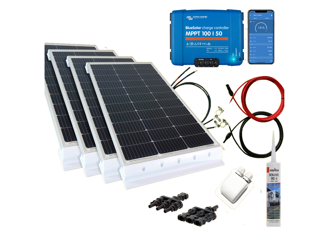 520 Watt Wohnmobilsolaranlage Set mit Victron 100/50 inkl. Bluetooth in weiß