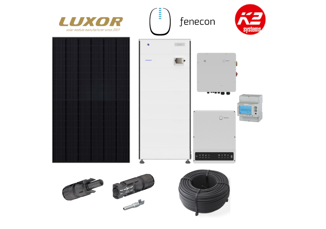 Photovoltaik Komplettanlage 12 kWp | Luxor Module + Fenecon Home 10 kW Hybridwechselrichter + Fenecon Speicher + Montagematerial