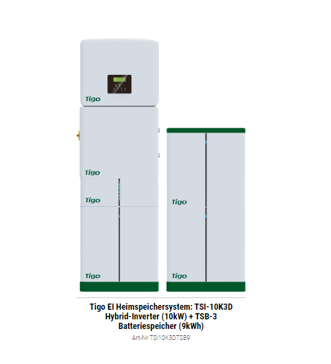 Tigo EI Heimspeichersystem: TSI-10K3D Hybrid-Inverter (10kW) + TSB-9 Batteriespeicher (9kWh)